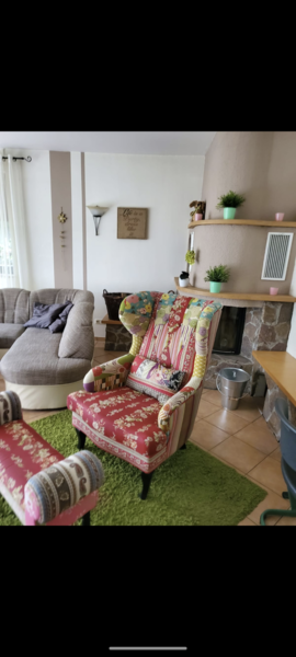 Im Erdgeschoss ist ein großes Wohnzimmer mit einer Schlafcouch, Sat-TV und einem gemütlichen Kamin sowie eine offene Küche mit kompletter Einbauküche mit Geschirrspüler, Kühl- Gefrierkombi, Filterkaffeemaschine, Mikrowelle, Wasserkocher, Toaster und CD-Radio vorhanden.